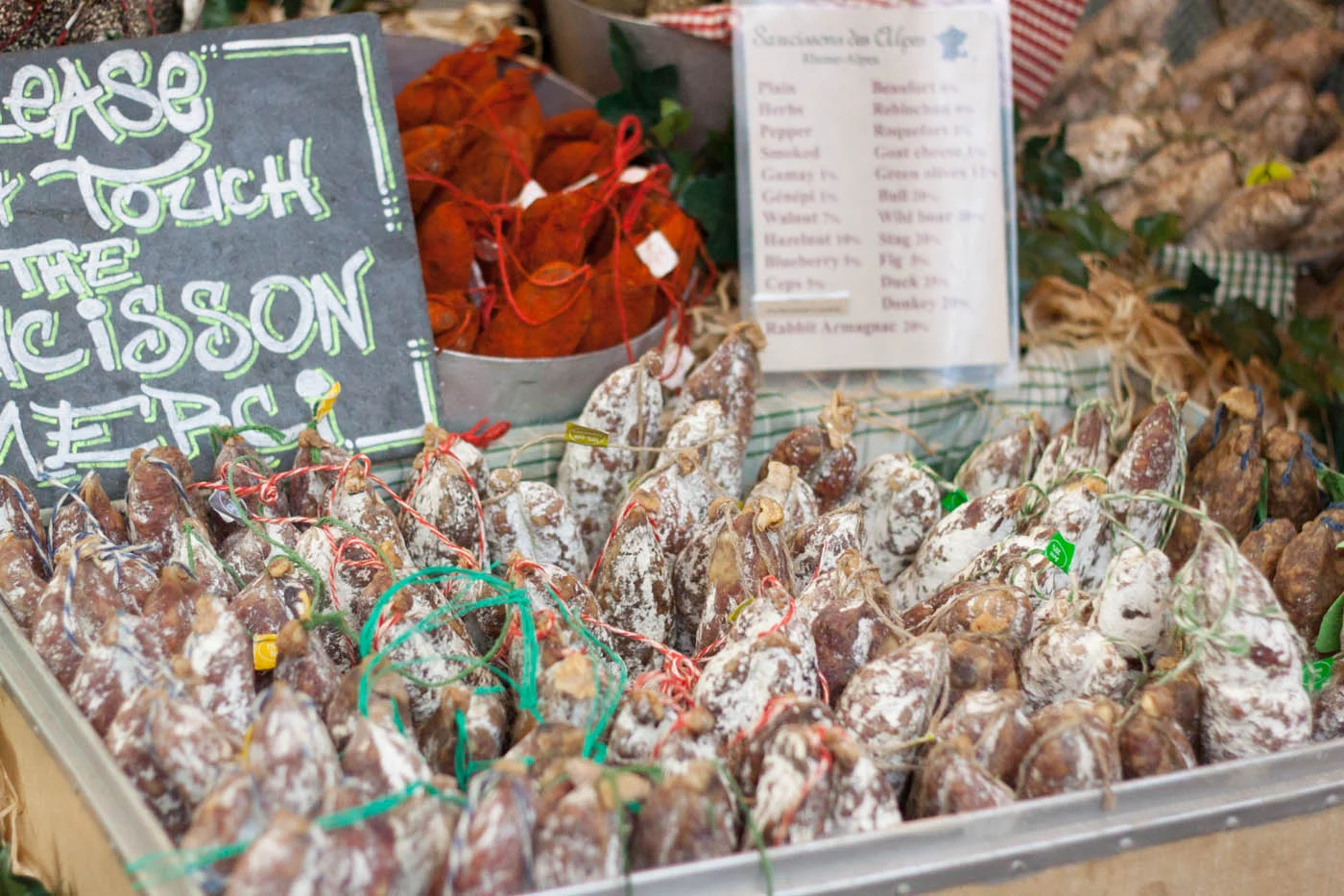 The market is one of London's most renowned food markets with product from all around Europe. Truffles and cheese from France, the most amazing selection of ham and salami from Italy, olives and spices from Turkey to Greece...